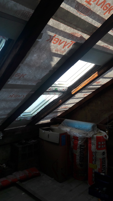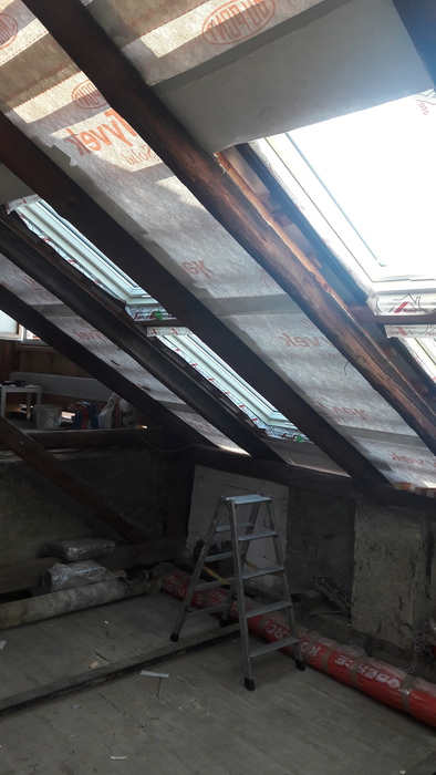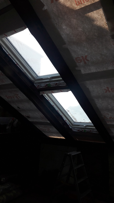 Kombinace střešních oken nad sebou přináší více světla do hlubší části podkroví. Nové podkroví v Kuřimi je moc hluboké a proto si investor zvolil kombinaci střešních oken nad sebou. Světlo krásně prosvětlilo celé podkroví až dozadu.
