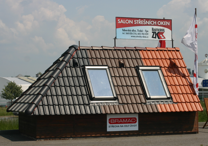 Od roku 2002 máme stálou prodejnu v Třebíči na Táborské ulici na bývalé návsi. Před prodejnou máme vystaveno ukázkové podkroví se střešními okny přímo ve střeše. Zákazníci si střešní okna mohou prohlédnout, vyzkoušet i osahat přímo za deště nebo slunce. Nejsou to jen vystavené vzorky střešních oken, jsou to zabudovaná střešní okna, stejná střešní okna jako budou doma u zákazníka.